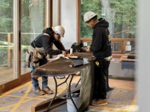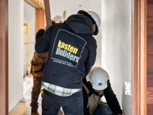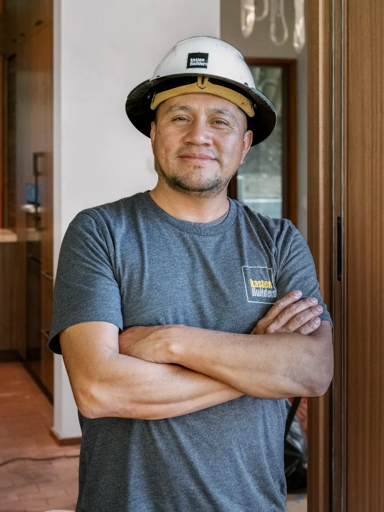 Site superintendent Juan Gonzalez leads Kasten’s self-perform carpentry crew, working closely with team members Marvin and Mario. His steady leadership has brought the project to this point and keeps the crew moving through the remaining items.
