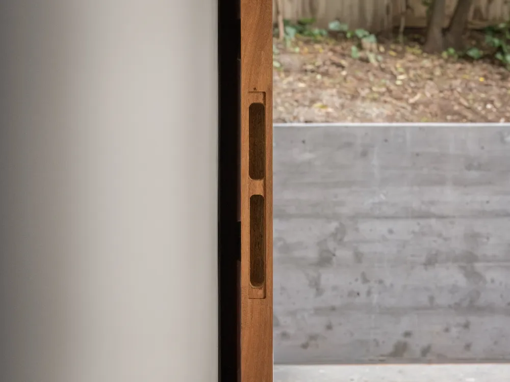 The guest house is part of a property that includes a main home designed in the 1960s by architect Henrik Bull. Years later he drafted early sketches for an additional structure that never got built. Those sketches and a close study of the main house shaped the direction of this project.