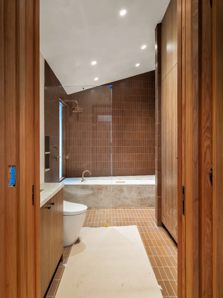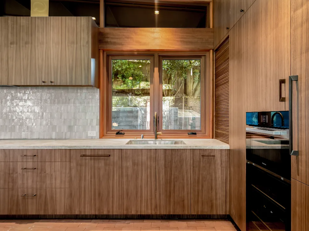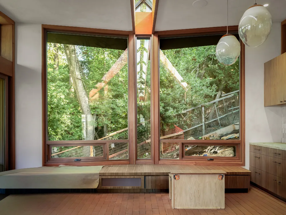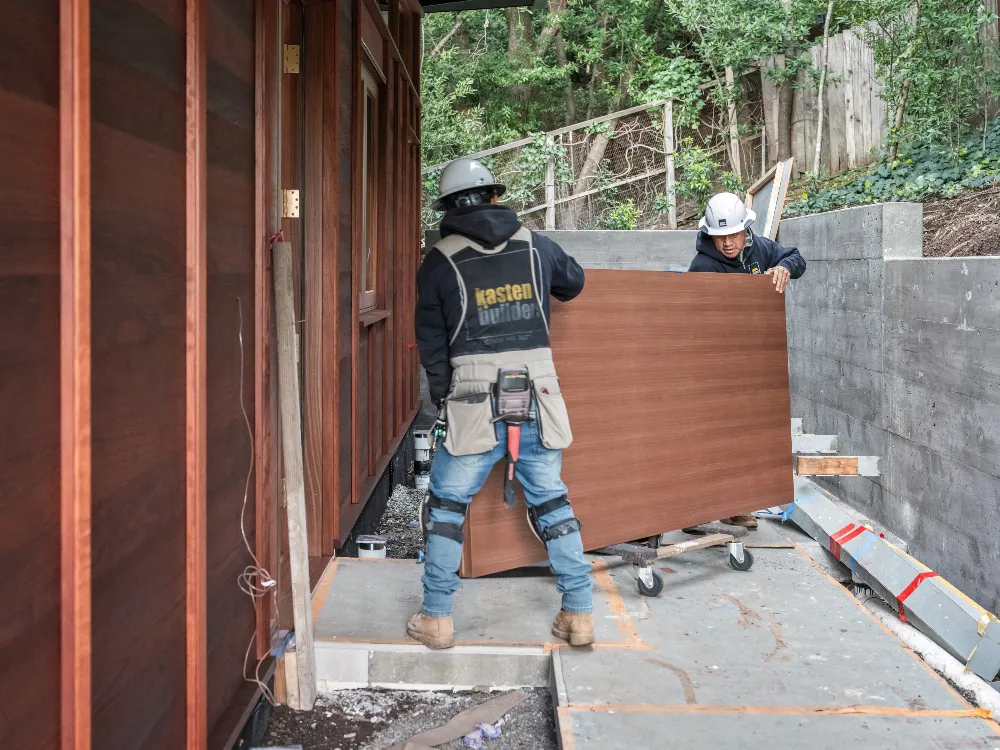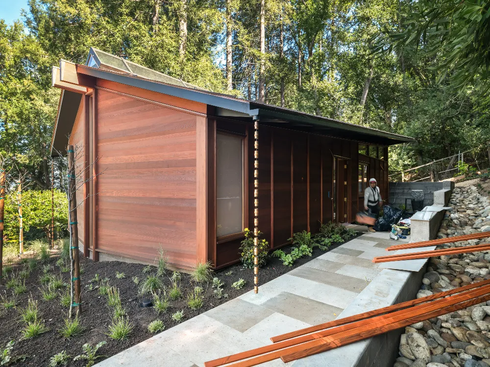 The Bullseye Home is a small guest house tucked into a redwood grove atop the rolling hills of Marin County. The project is nearing completion and the team is now working through punch list.