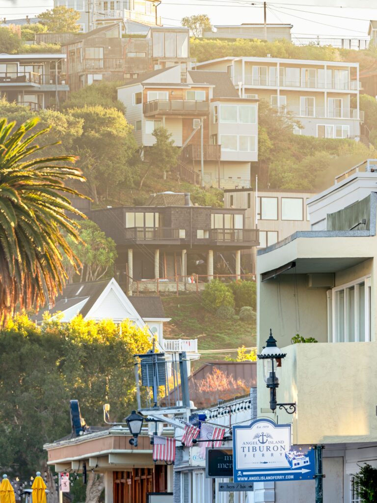 Mar West sits above the San Francisco Bay in Tiburon. The waterfront and the hillside are inseparable here. The views are wide open, and water and light create an atmosphere that feels alive. The neighborhood rises quickly from the waterfront and the slope that the house sits on is the defining constraint of this site. It demands working with what’s here rather than forcing something onto it.