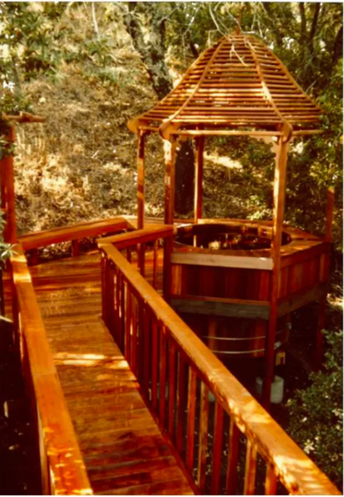 In 1976, Dennis also established Creative Energy Corporation, a Hot Springs Spa dealership that is still in business today. In the late 1970s, Marin County was known as the hot tub capital of the world, and Dennis played a major role in shaping that identity. He designed and built hundreds of stunning backyard decks and trellises to complement the original redwood hot tubs sold by Creative Energy. Meanwhile, Creative Contracting was gaining a reputation as one of the Bay Area’s premier custom residential builders. The company even operated its own in-house cabinet shop, providing clients with finely crafted custom woodwork.